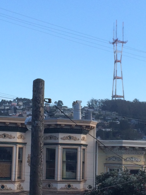 Well. Let’s start from the beginning. I (Carlie Cole) moved into an Edwardian condo on Frederick Street. Yes, it is a far cry from my old SOMA hood in the heart of things in downtown S.F. But where could I get this FABULOUS view of SUTRO TOWER (a 977 ft. three-pronged antenna tower rising from a hill between Twin Peaks and Mount Sutro)?? ONLY from my bedroom window! Heck, it’s just a very prominent part of the SF skyline and a landmark for residents and visitors of the fabulous city!